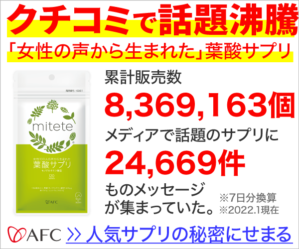 AFC mitete葉酸サプリから、うれしいお知らせです。